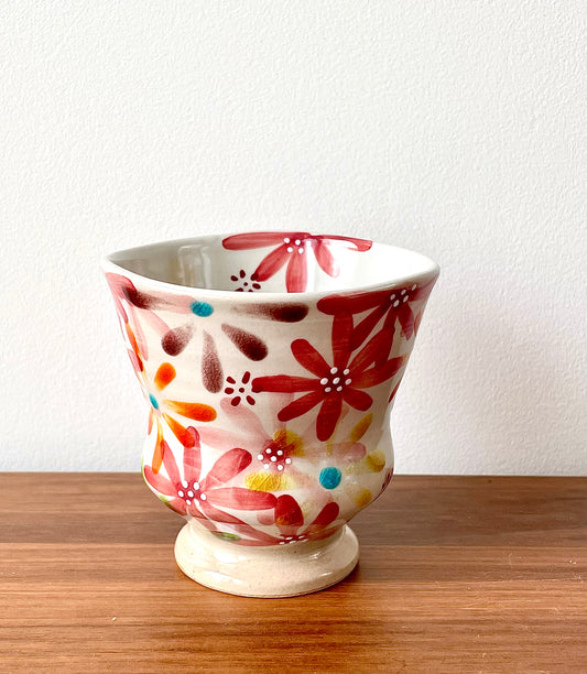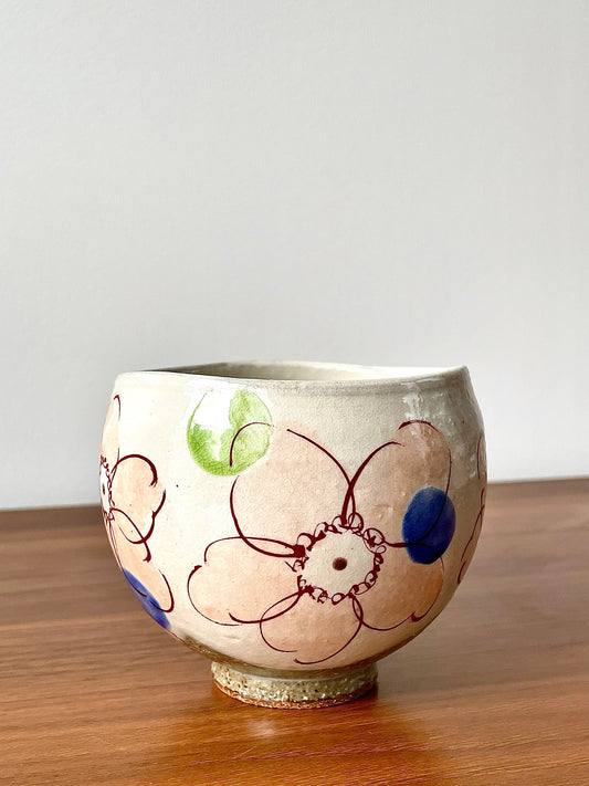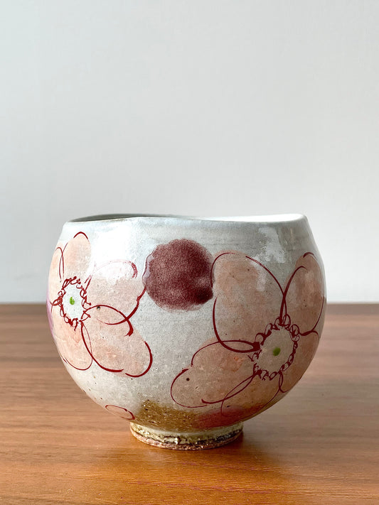 Zoho Gama Red Flower Print Tea Cup志野赤椿 湯呑